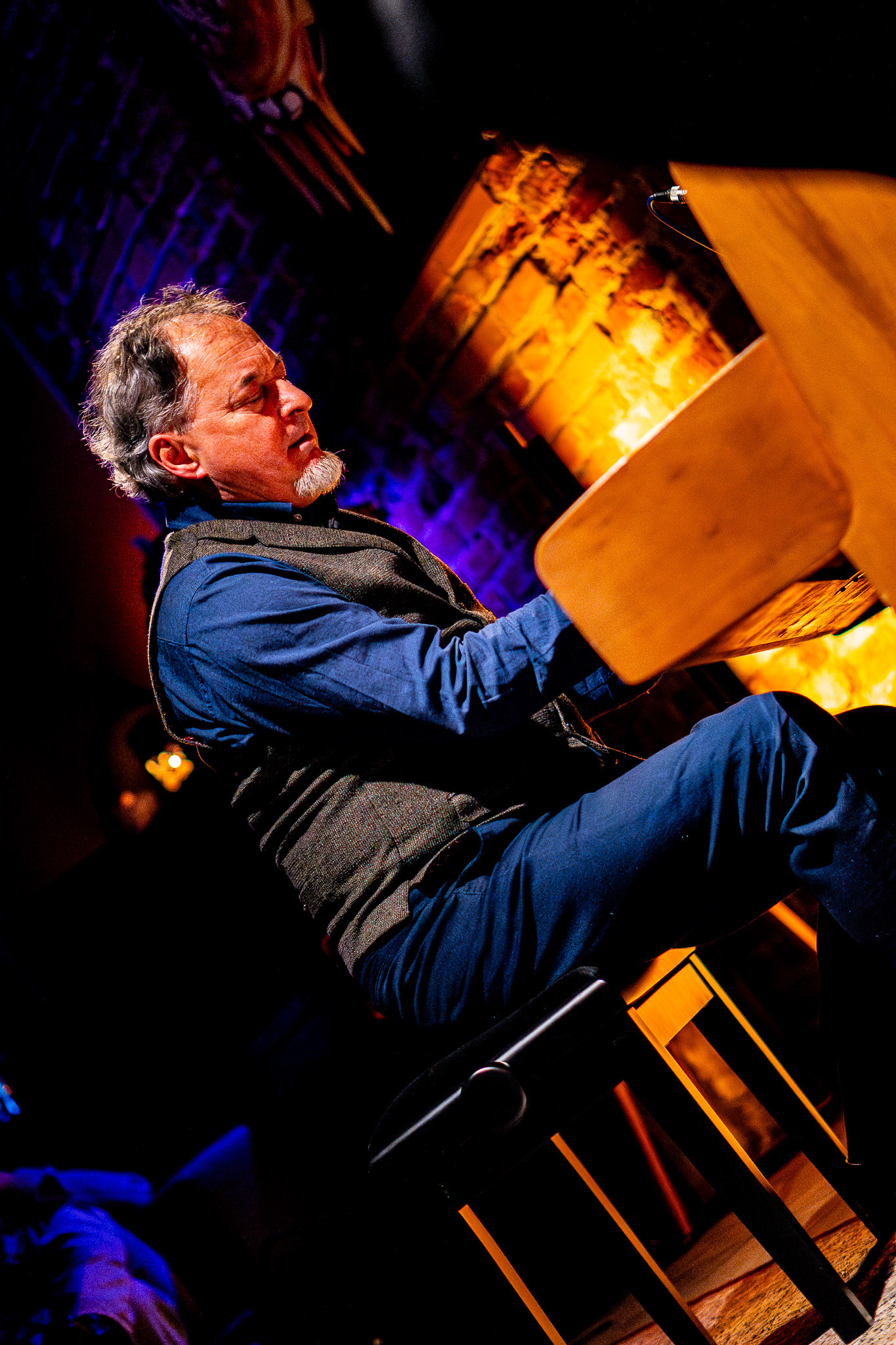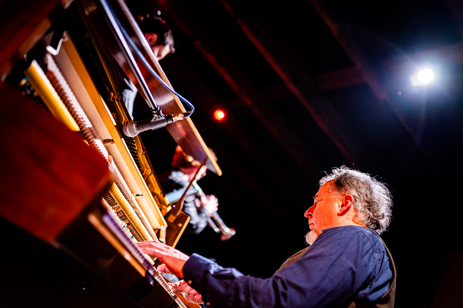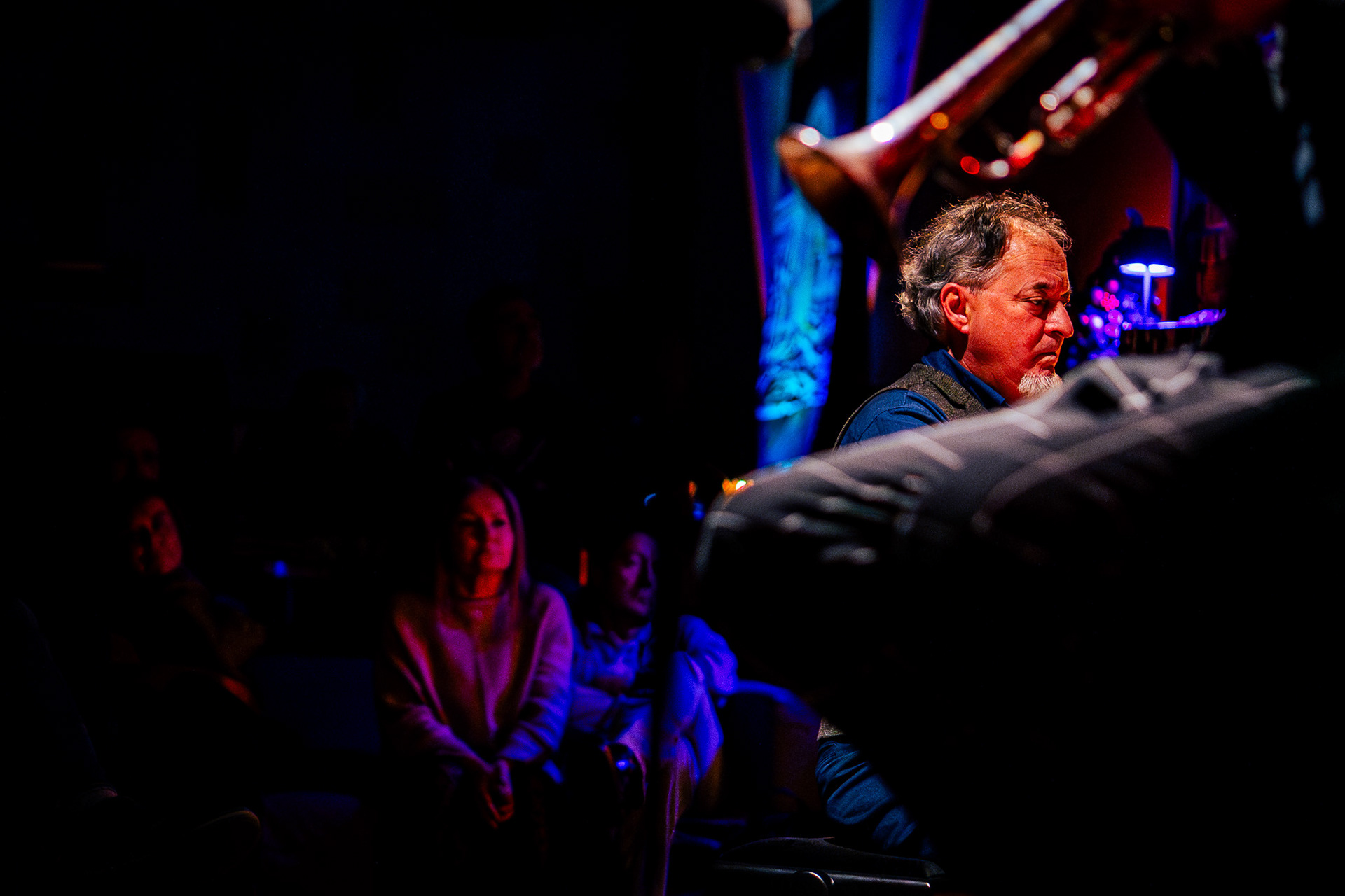 Being between the audience and the musicians is a difficult task. You want to drift away with the sound, but at the same time, you must take photos — focused, invisible. Crawling quietly, shutter silent, changing lenses almost noiselessly. The musicians' humility is incredible — the way they look at each other with admiration and respect. Focused.